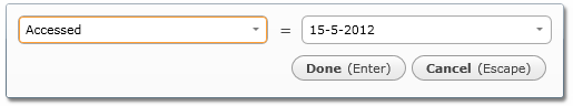 You can also search your meta data by using search terms directly in the Search in all text documents field (see step 2). For example, insert from=john or from=null (in the first example you search for the value 'john' in the field 'from', in the second example you search for empty field values in the field 'from'). Be sure to use the field names displayed in the second list, where no spaces are used (accessed, appointmentend, appointmentstart, assignedto, etc.).